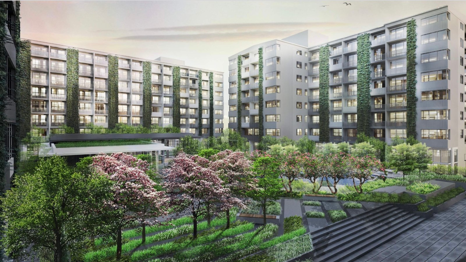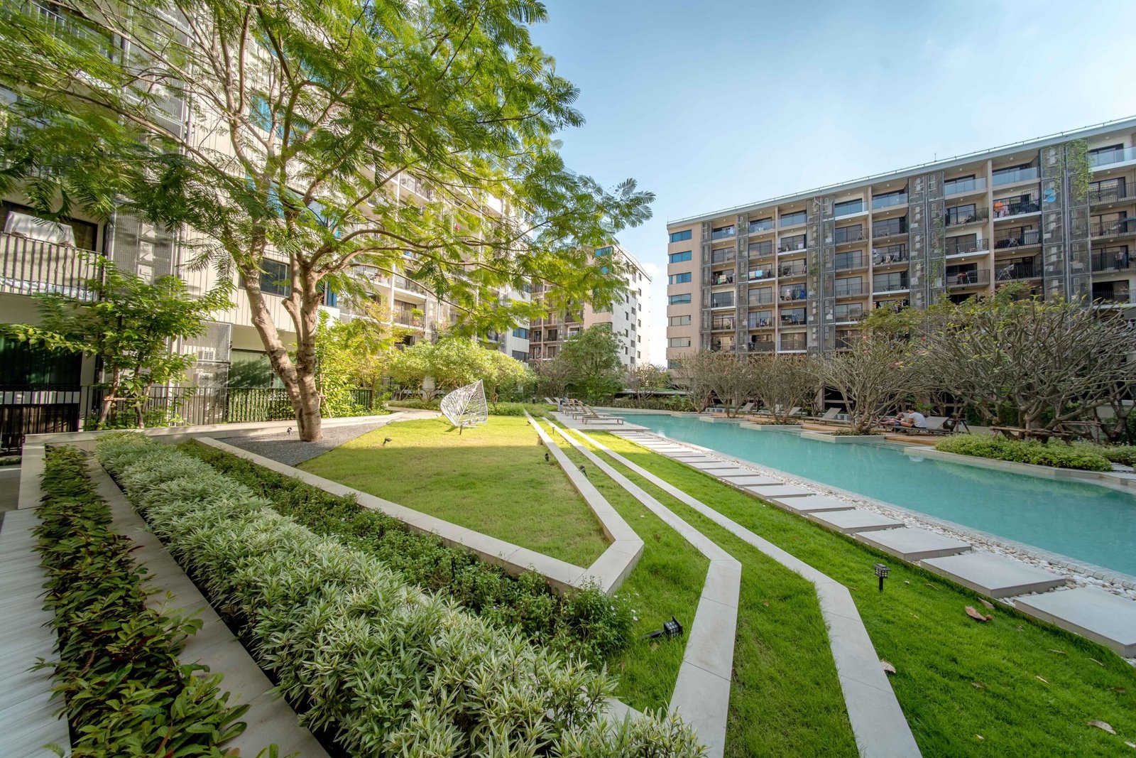 Make every day a vacation…for a fulfilling life in this resort-style condo in the heart of the city, just 3 minutes from BTS Surasak*. The living room design features a balcony with views and fresh air in the surrounding green spaces. The building's Green Wall creates a sense of oneness with nature. Relax by the swimming pool surrounded by nature.