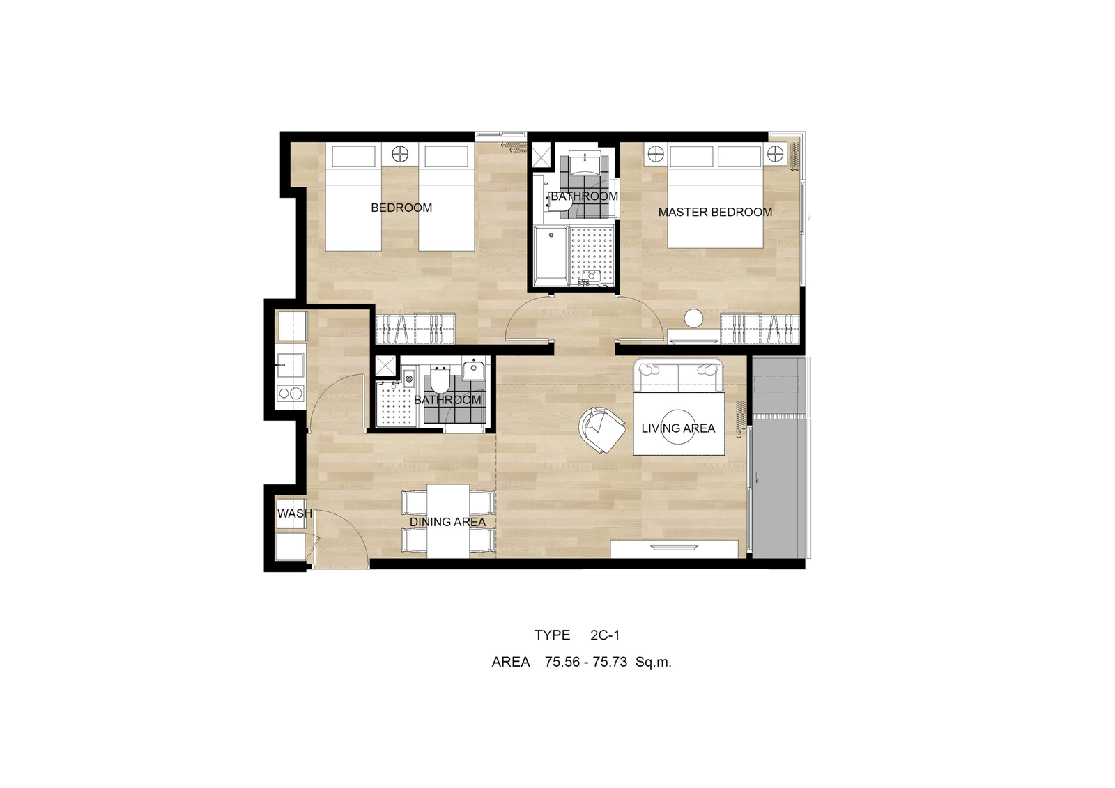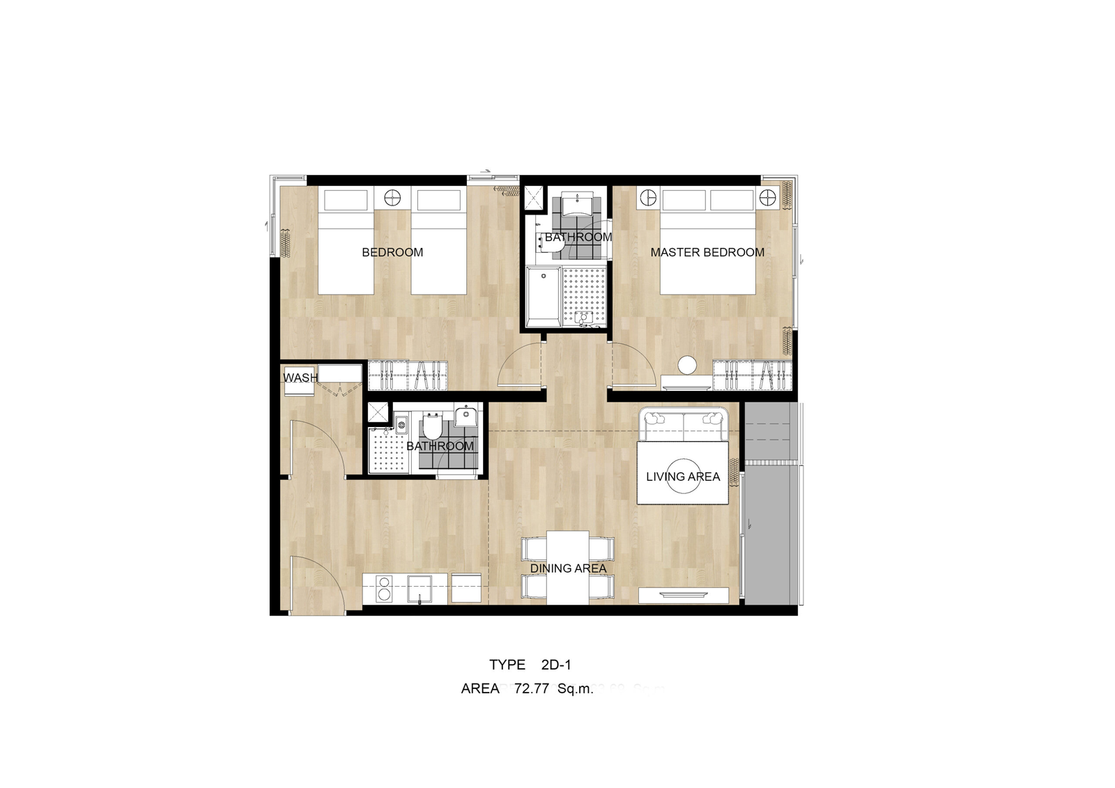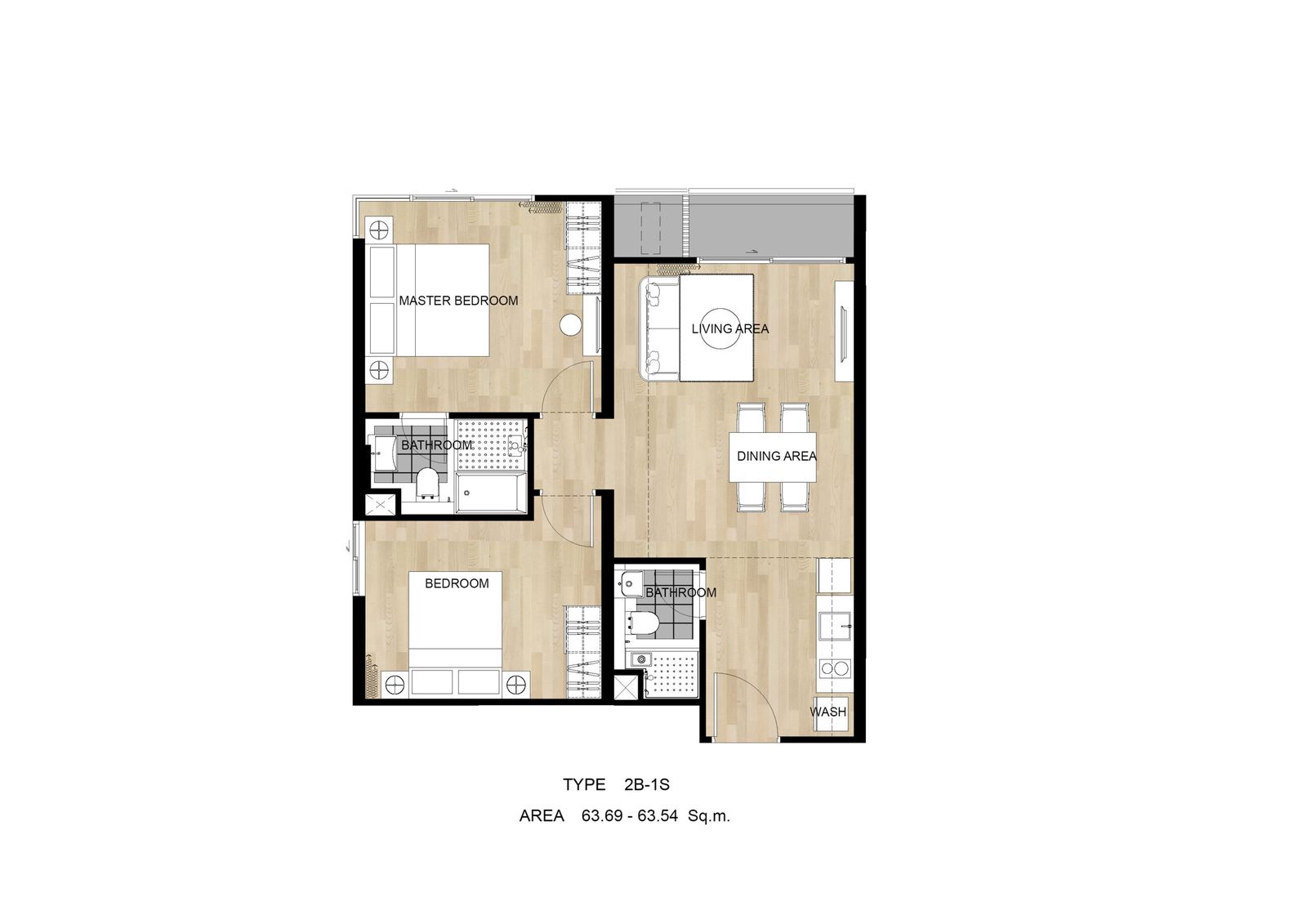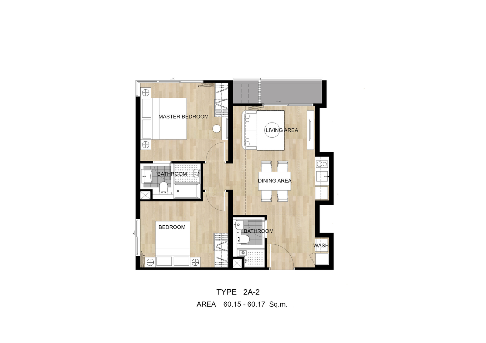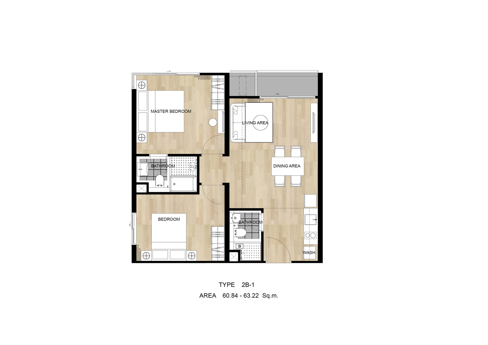 2 bedroom: 60.16 - 65.84 SQ.M.