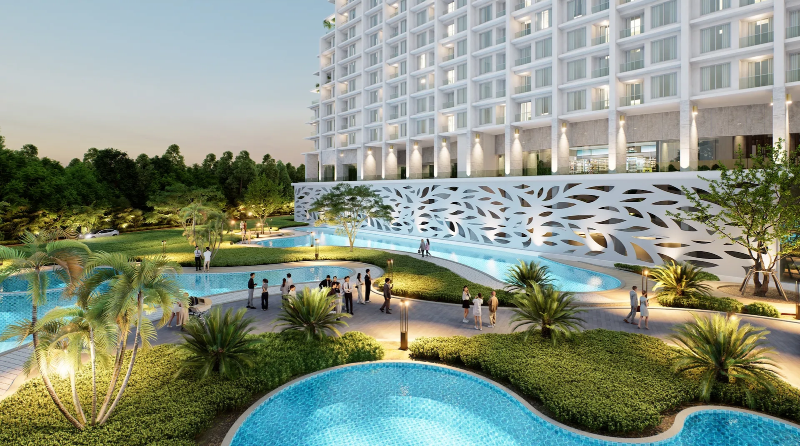 The project emphasizes panoramic views: from the 27th-floor swimming pool and the 51st-floor lobby/lounge, which offer both city and sea views. The resort-style living experience blends residential living with leisure activities, offering a more resort-style experience than typical condominiums. Shopping, restaurants, lounges, a sky garden, and more are available.