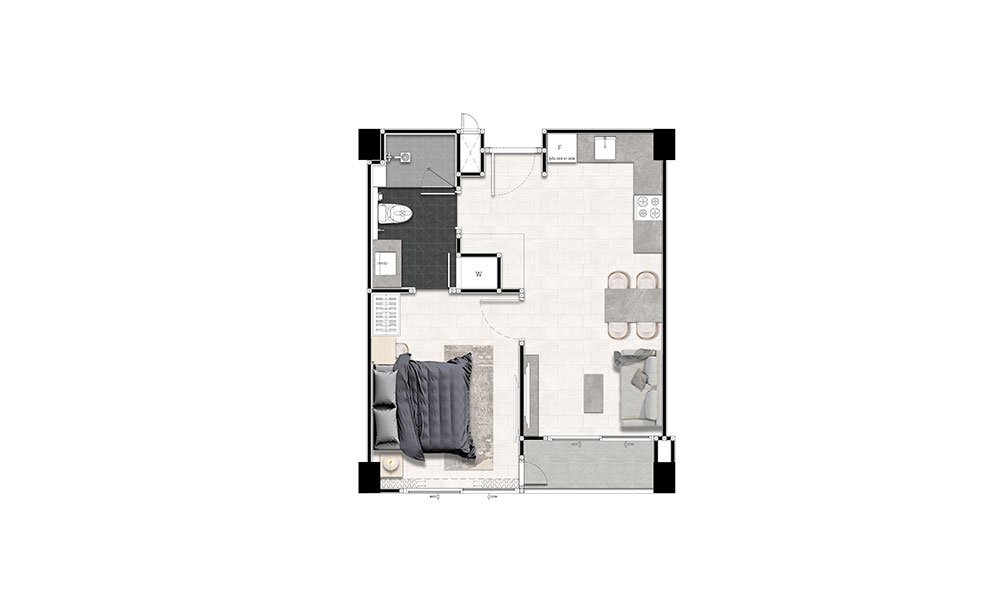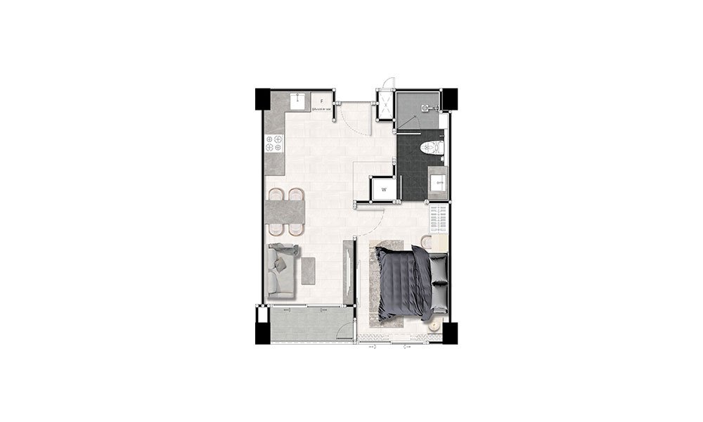 Type A3: 1 bedroom | 1 bathroom | 45.81 SQ.M.