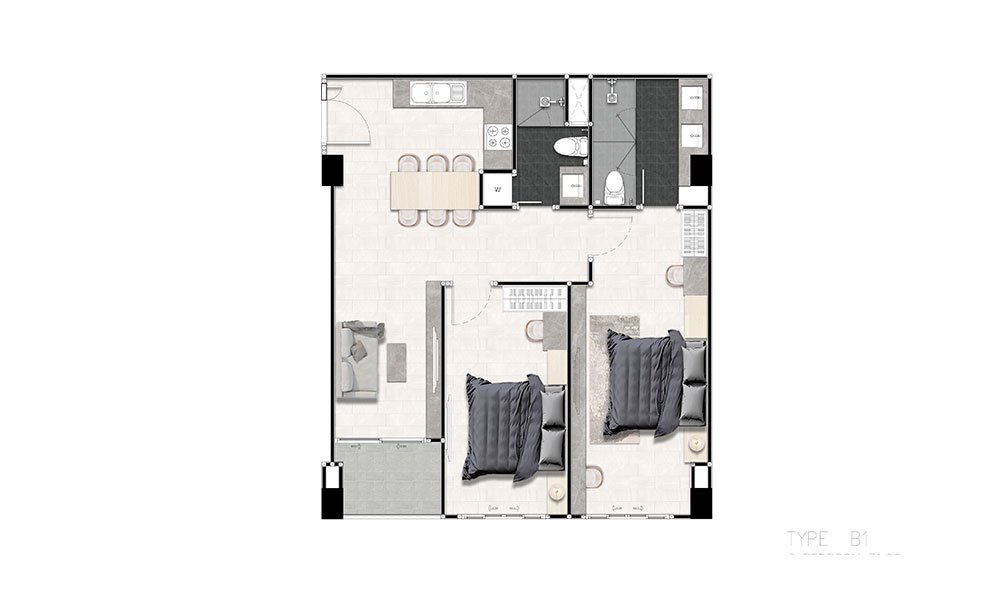 Type B2: 2 bedroom | 2 bathroom | 73.25 SQ.M.
