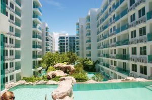 Four 8 storey buildings enclose the courtyard with the huge swimming pool that will evoke a vacation feel all year long. Composed of Amazon like styled landscape of rocks, lush gardens, boardwalks and water of the huge swimming pool that flows in waterfalls make Amazon Residence Resort in Jomtien a fabulous place to stay. Fountains and water slides for fun, cave for relaxation, sundecks, good equipped gym, 24 hours security service, key card access, parking, make the complex a great holiday home.