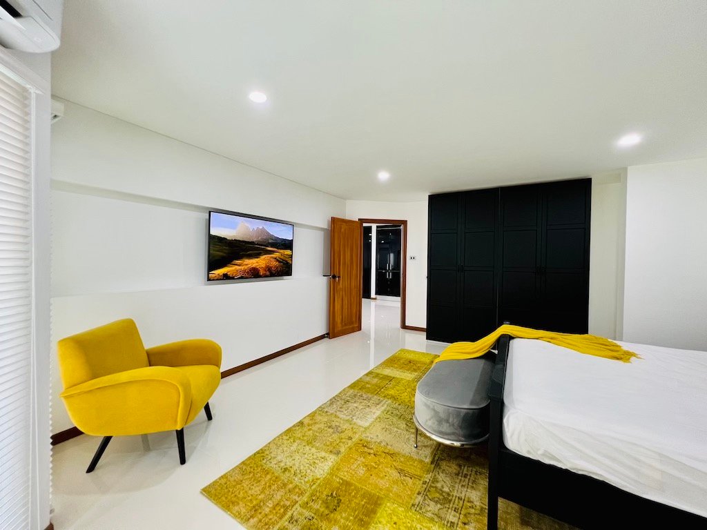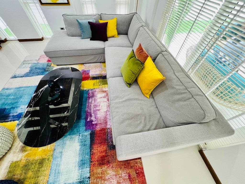 • Spacious living area with playful design touches