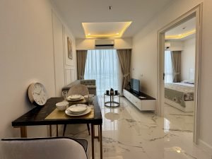 Empire Tower is a modern residential complex located in the Jomtien area. It is distinguished by its stylish architecture, refined interior design, and a wide range of amenities. The complex offers spacious apartments, including 32 m² one-bedroom units, all designed with meticulous attention to detail: high-quality furnishings, elegant textiles, and fully equipped kitchens. Empire Tower is perfect for those who value comfort, sophistication, and a convenient location.
