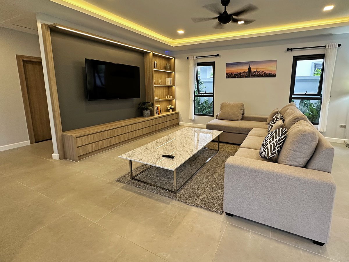- Built-in TV cabinetry in the living room and each bedroom