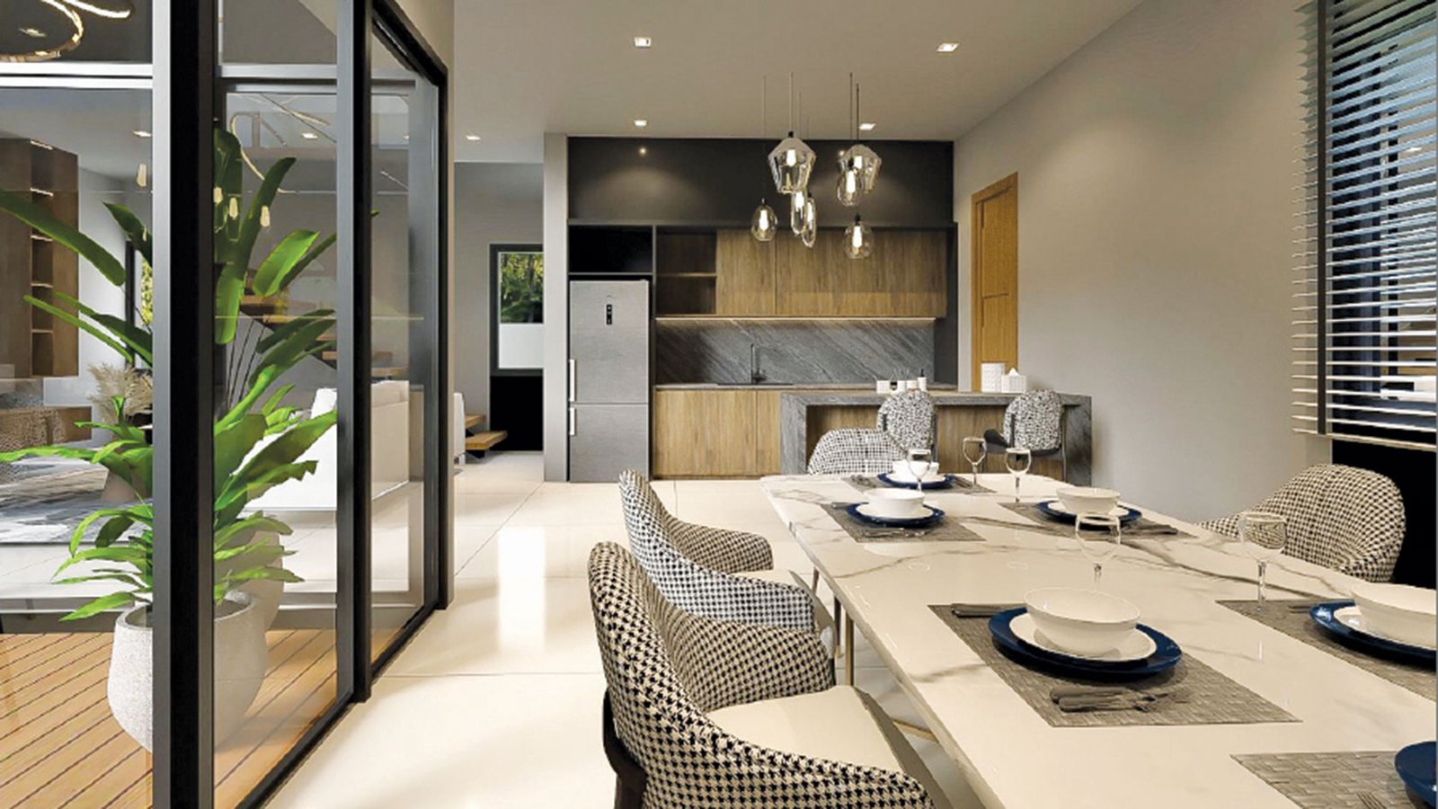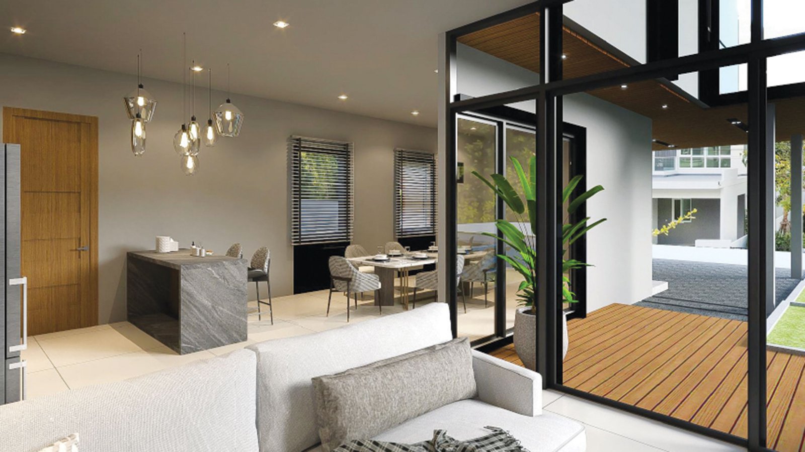- Powder-coated high-quality laminated windows and sliding doors throughout