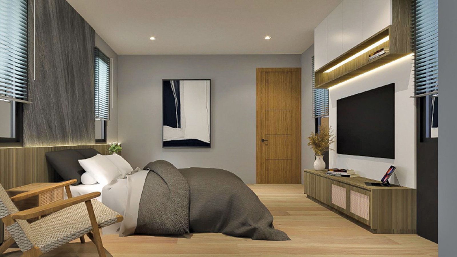 - Built-in TV cabinetry in the living room and each bedroom